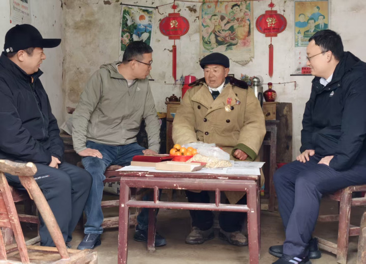 在商城县的达权店镇新店老街,时间似乎走得更慢一些。青石板路泛着二月的微光,斑驳的墙壁像一部沉默的史书。2月2日,我们踏着晨光来到这里,奔赴一场穿越了七十年烽火的约定——探望抗美援朝老兵周益钦。